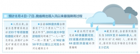 “我们将本着‘有汛无汛随时准备、晴天雨天全员值守’的原则,强化隐患排查和处置力度,严阵以待,严防死守,以百分之一百的准备应对百分之一的可能,确保全省安全度汛。”薛军正说。(张毅)