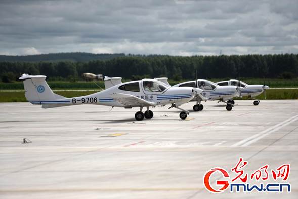 光明网讯(记者 赵艳艳 潘迪 李刚)“嘟嘟嘟……”在内蒙古自治区扎兰屯成吉思汗机场的跑道上,一架架训练机整齐划一,蓄势待发。没几分钟,随着飞行学员们熟练的操作,训练机机群直上云霄,在成吉思汗机场上空画出一道道美丽的弧线。这些年轻的飞行学员们,来自中国民航大学内蒙古飞行学院。