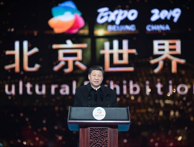 2019年4月28日,国家主席习近平在北京延庆出席2019年中国北京世界园艺博览会开幕式,并发表题为《共谋绿色生活,共建美丽家园》的重要讲话。新华社记者王晔摄