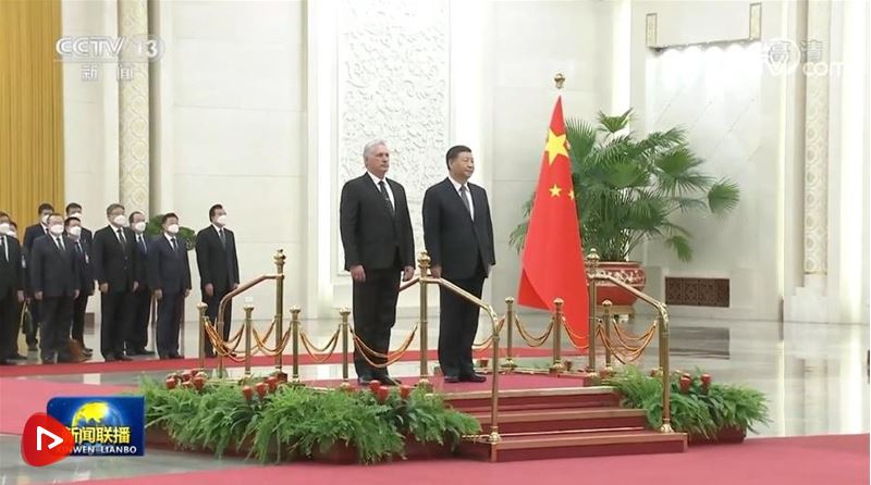 中共中央总书记、国家主席习近平25日上午在人民大会堂北大厅举行仪式,欢迎古巴共产党中央委员会第一书记、古巴共和国国家主席米格尔·迪亚斯-卡内尔·贝穆德斯对我国进行国事访问。