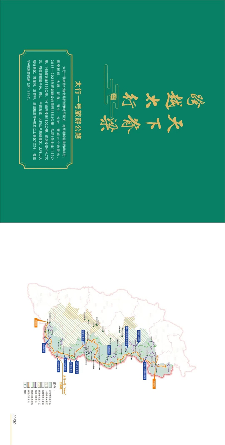2018年,山西省启动三个一号旅游公路项目,规划建设1.3万公里,目前已完成9797公里,占规划总里程的76%,实现主线贯通,串联起158个A级以上景区、536个非A级旅游景点,连通全省109个县(市、区)、4650个村庄。