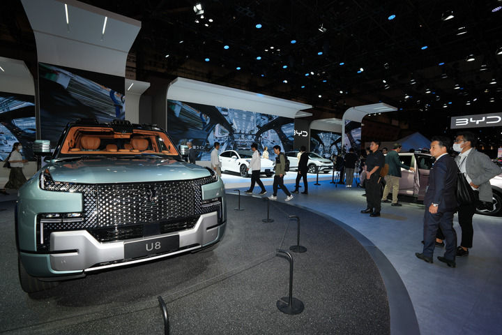 10月26日,人们在日本东京举行的日本移动出行展上参观展出的比亚迪仰望U8新能源汽车。新华社记者 张笑宇 摄