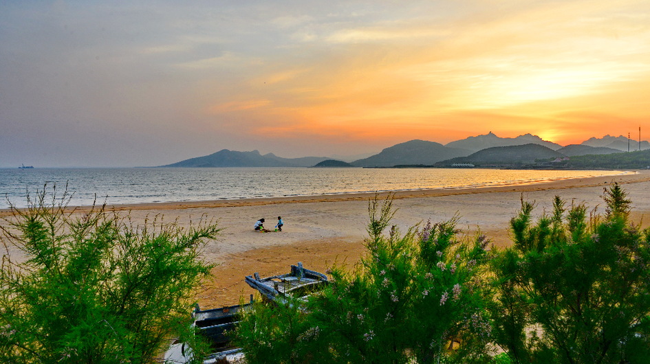 海滨夕照 水清岸绿入画来