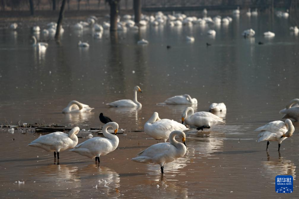 占地6000多公顷的山西平陆黄河湿地位于山西、河南两省交界处,这里气候温和、采食丰富,非常适宜白天鹅越冬。每年秋末冬初,白天鹅就会成群结队地从俄罗斯西伯利亚地区陆续飞临这里越冬。