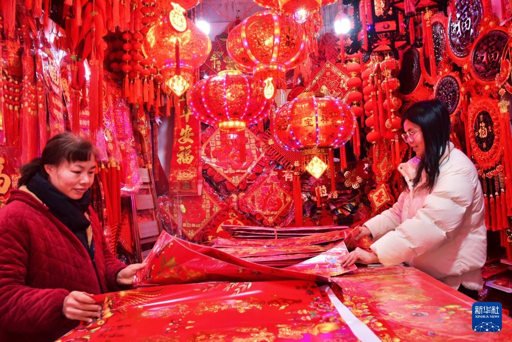 进入农历腊月,春节日益临近,人们忙着购年货、写春联,红红火火迎新春。