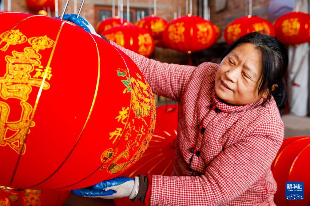 1月11日,河南省焦作市武陟县西陶镇石荆村一家手工灯笼制作工坊的工人在制作红灯笼。(新华社发 王琳锋 摄)