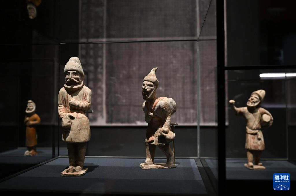 这是展出的陶彩绘人俑(1月10日摄)。(新华社记者 金良快 摄)