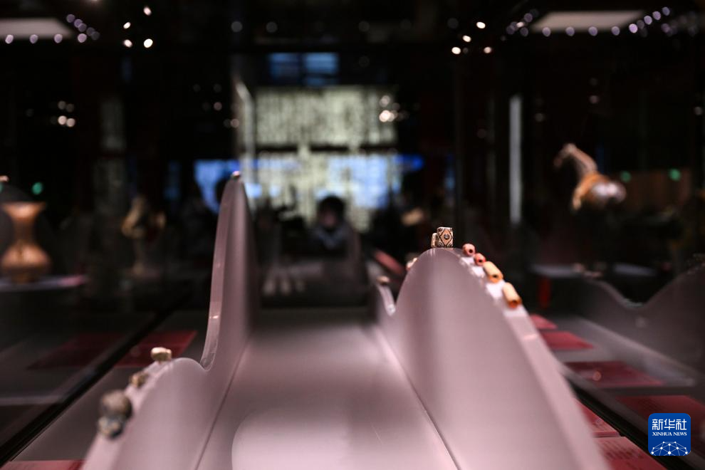 这是展出的方型蜻蜓眼玻璃珠(1月10日摄)。(新华社记者 金良快 摄)