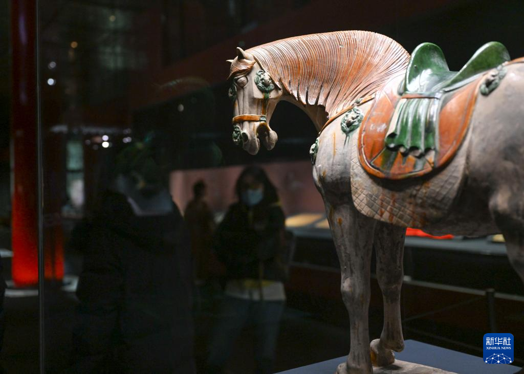 这是展出的陶彩绘马与三彩骆驼(1月10日摄)。(新华社记者 金良快 摄)