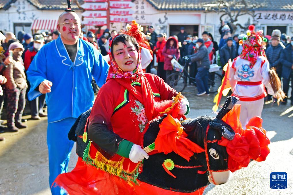 1月14日,民间艺人在山东省烟台市芝罘区东方文化市场表演当地民俗。(新华社发 孙文潭 摄)