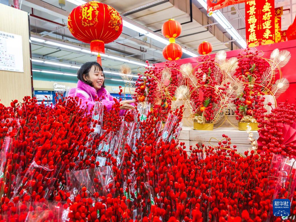 1月14日,市民在贵州省安顺市西秀区一家超市选购新春饰品。(新华社发 陈熙 摄)