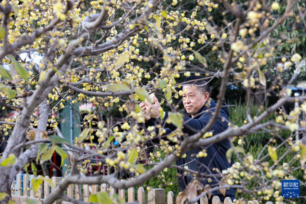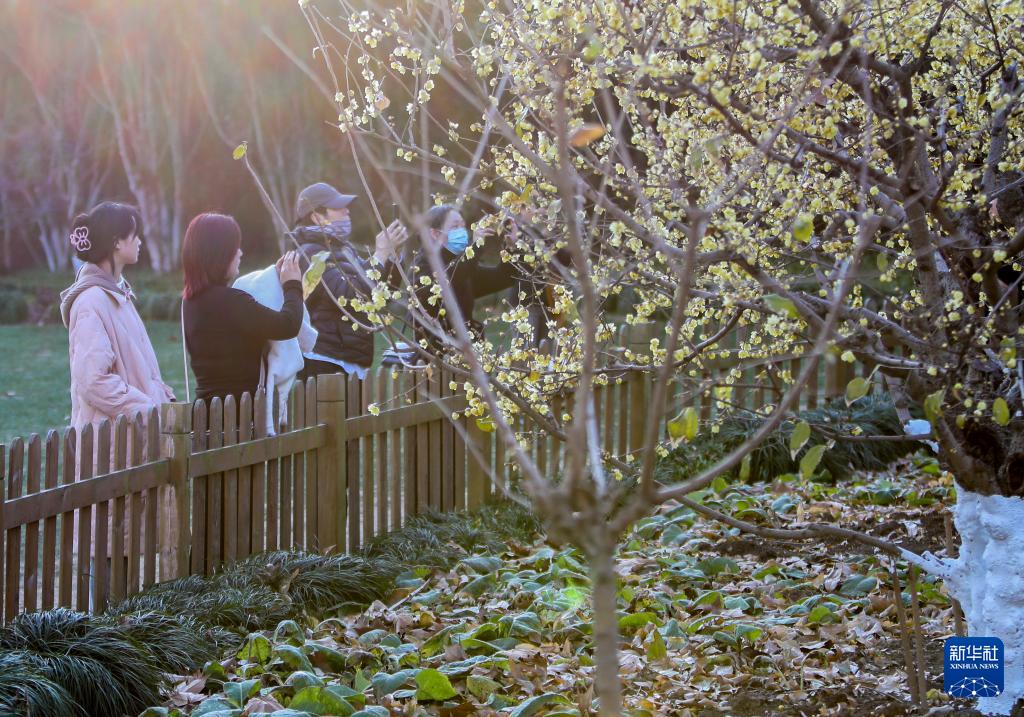 近日,上海市世纪公园内的腊梅绽放,吸引人们前来观赏。