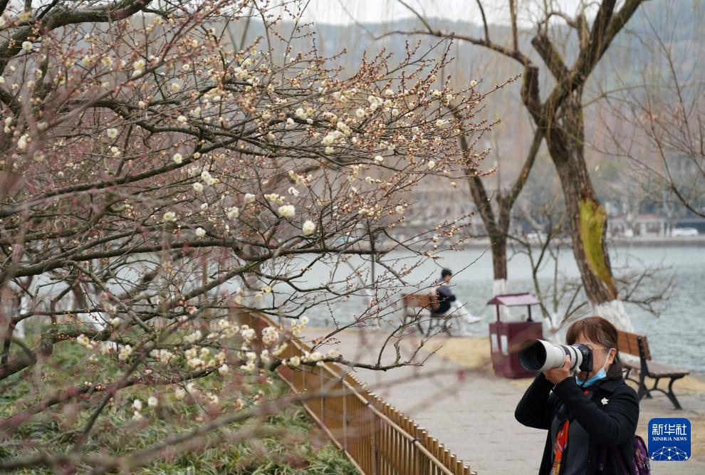 近日,杭州西湖孤山一带红梅、白梅悄然绽放,暗香浮动,吸引民众前来赏花。