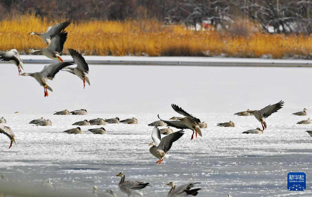 1月18日拍摄的拉鲁湿地的斑头雁。(新华社记者 张汝锋 摄)
