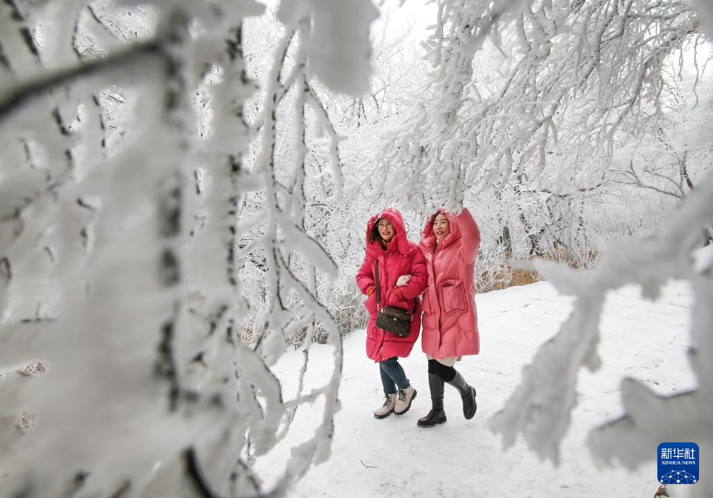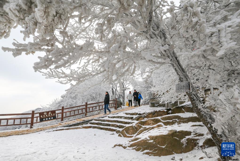 1月21日,游人在江苏省连云港市海上云台山风景区观赏雾凇美景。(新华社发 王春 摄)