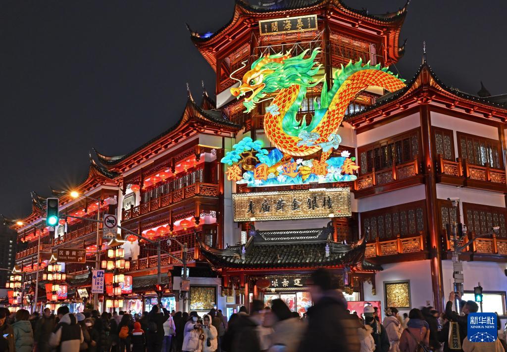 1月21日,游客在豫园商城赏灯游园。(新华社记者 刘颖 摄)