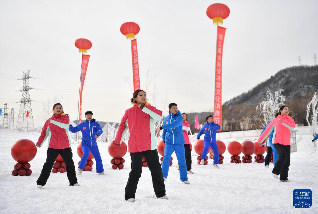 2023年12月22日,演员在延安市金延安景区冰雪文化消费节开幕式上表演。(新华社记者 张博文 摄)