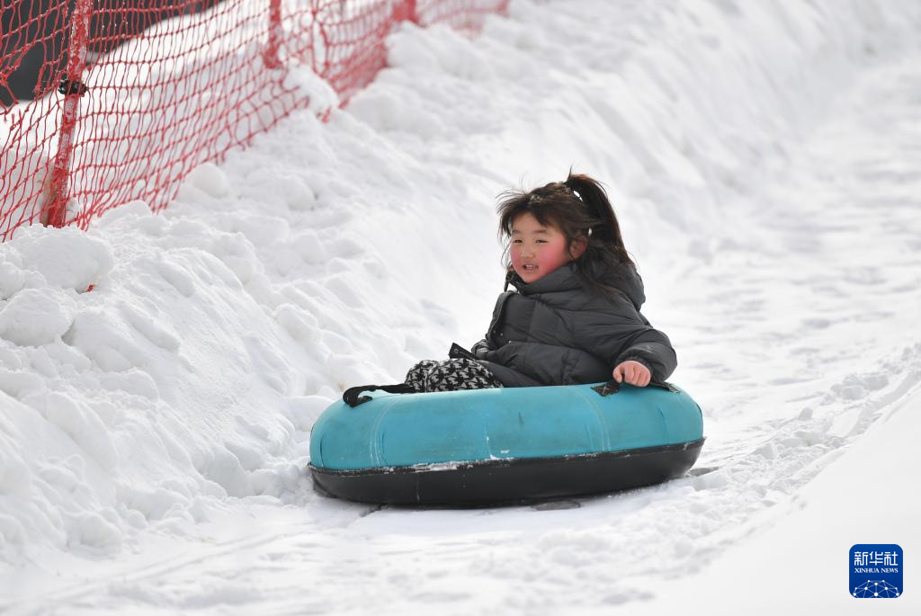2023年12月22日,小朋友在延安市金延安景区滑雪场玩耍。(新华社记者 张博文 摄)
