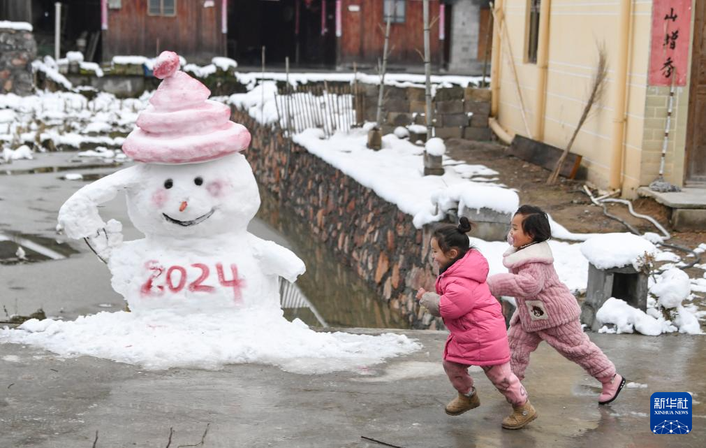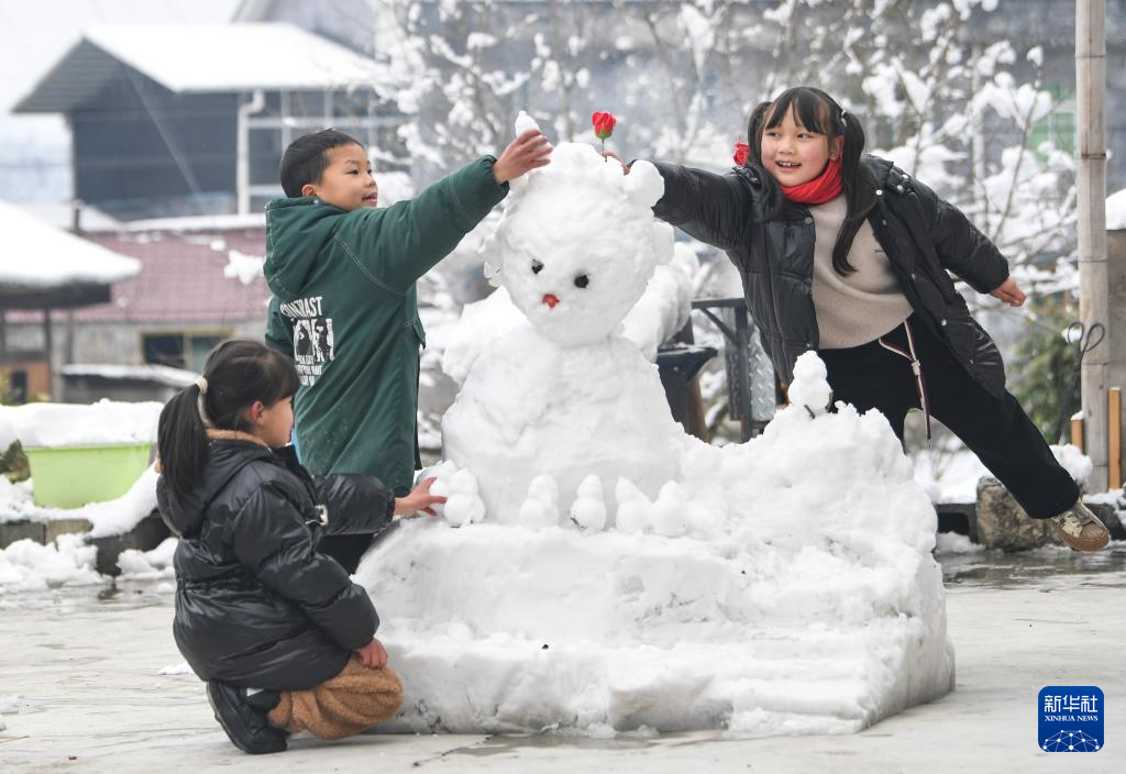 1月23日,小朋友在重庆市秀山县梅江镇民族村玩雪。(新华社记者 王全超 摄)