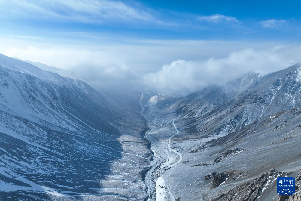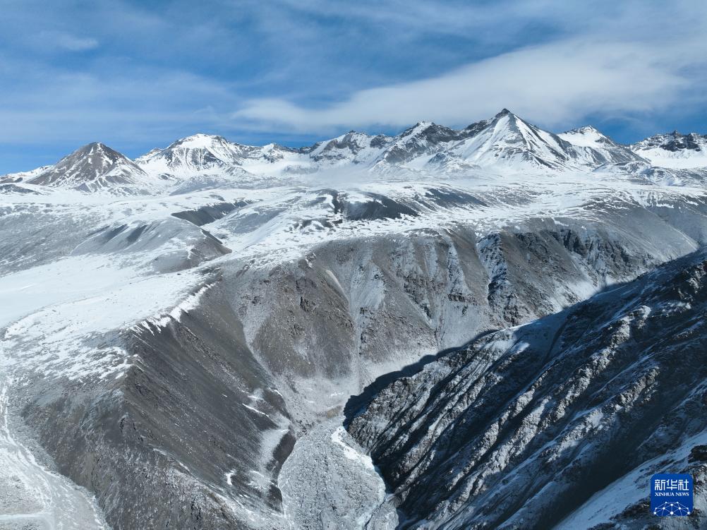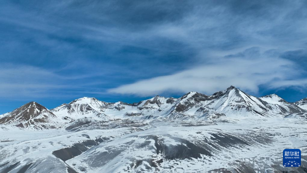 这是1月23日在青海省海北藏族自治州门源回族自治县境内拍摄的岗什卡雪峰(无人机照片)。(新华社记者 耿辉凰 摄)
