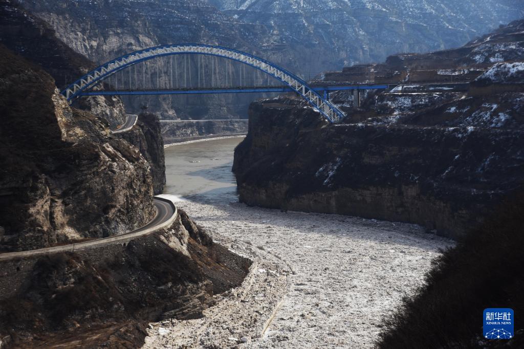 近日,受持续降温天气影响,黄河晋陕峡谷南段出现大面积流凌,场面甚为壮观。