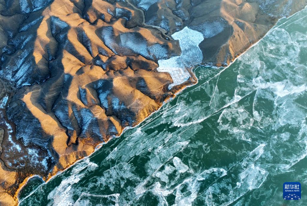 1月27日在宁夏吴忠市拍摄的已经结冰封河的黄河(无人机照片)。(新华社发 袁宏彦 摄)