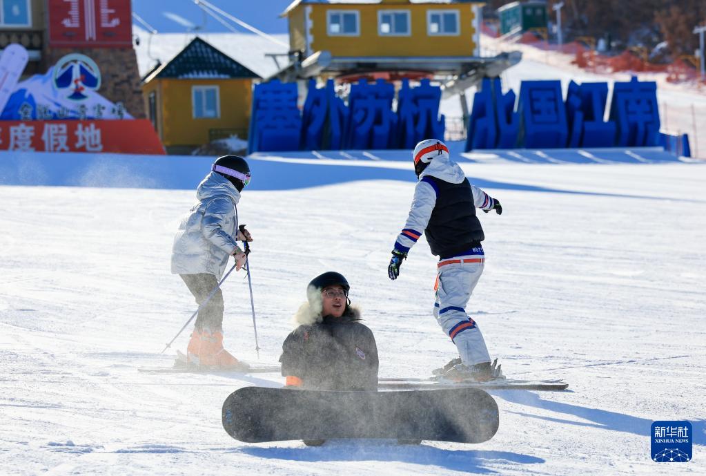 1月29日,滑雪爱好者在呼伦贝尔市扎兰屯金龙山滑雪场大众冰雪季活动中体验滑雪。(新华社发 王正 摄)
