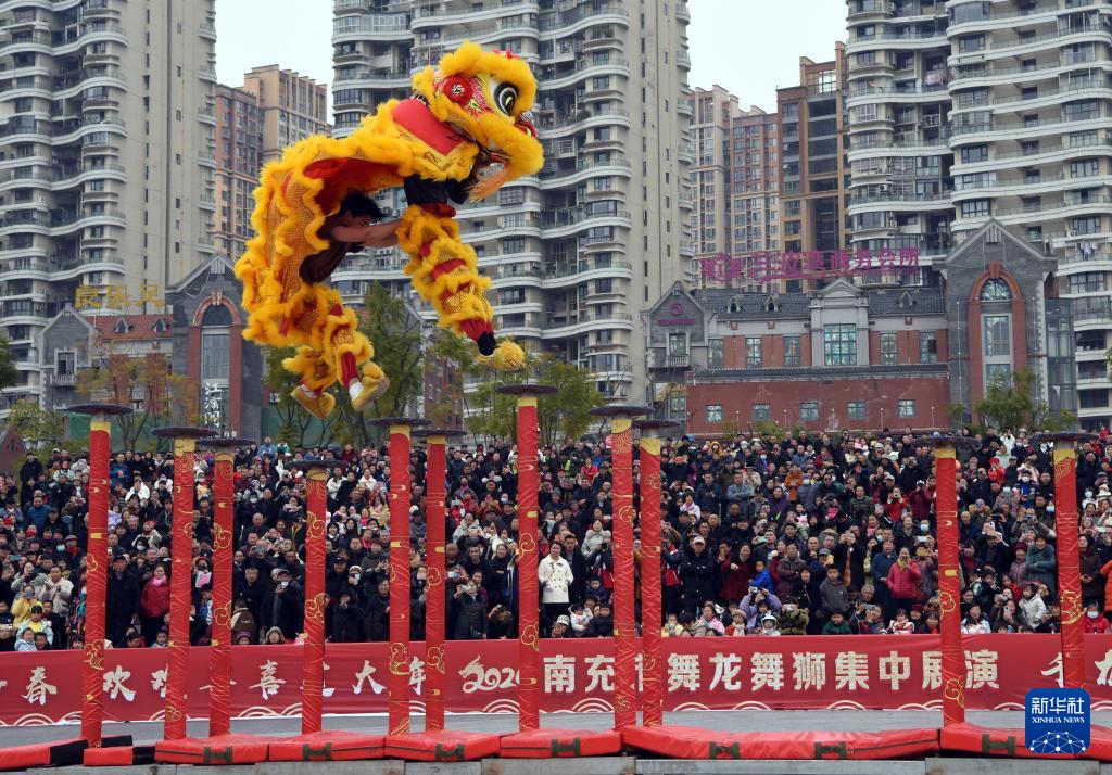 1月29日,四川省南充市顺庆区清泉公园举行2024“千龙千狮闹新春 欢欢喜喜过大年”舞龙舞狮展演。(新华社发 成潮生 摄)