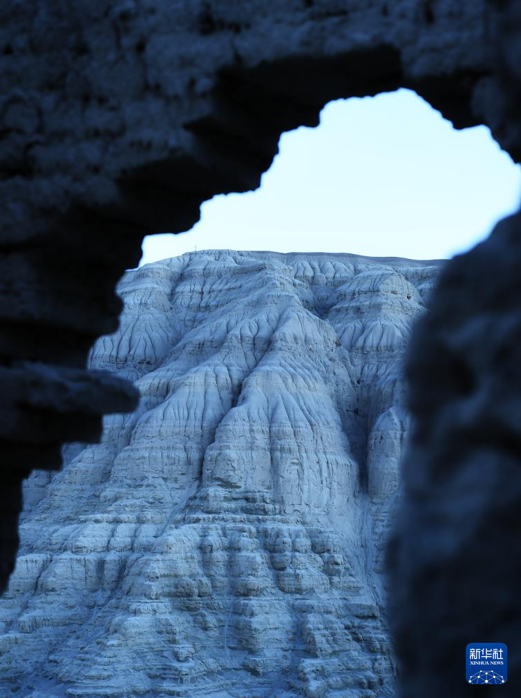 这是透过古格王国遗址残垣拍摄的土林(1月30日摄)。(新华社记者 关明辉 摄)