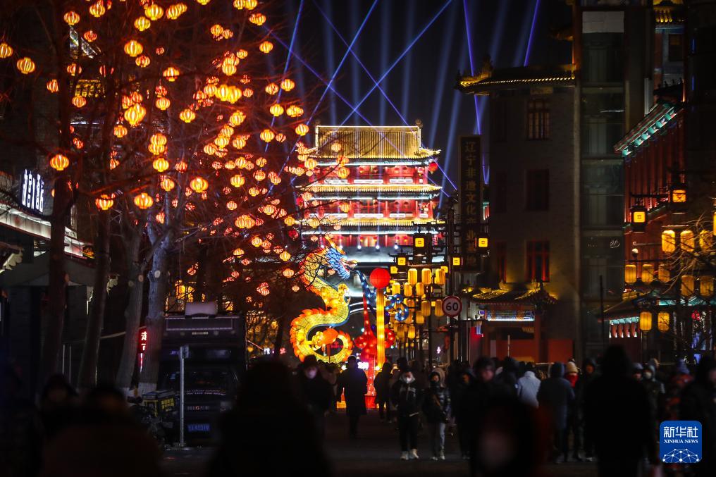 近日,2024沈阳方城灯会在沈阳市沈河区启幕。30多组大型灯组亮相沈阳中街、沈阳故宫博物院南广场等地,吸引市民和游客前来观灯赏景,喜迎新春。