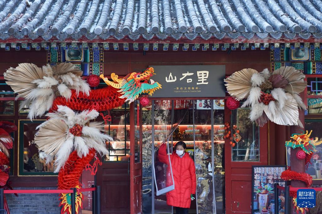 这是在景山公园里一处文创咖啡店拍摄的龙形象节日装饰物(1月23日摄)。(新华社记者 陈钟昊 摄)