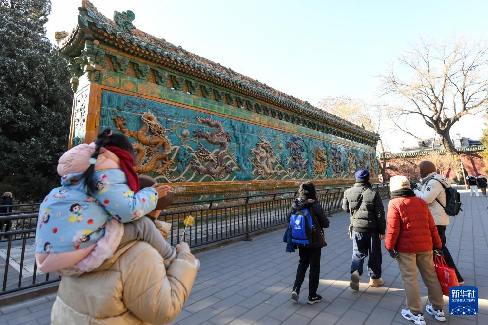 游客在北海公园内参观九龙壁(1月24日摄)。(新华社记者 鞠焕宗 摄)