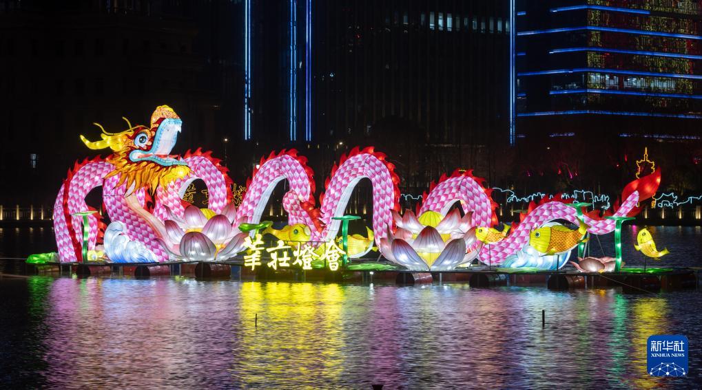 2月6日晚,2024年莘庄灯会在上海市闵行区莘庄镇春申湖上正式亮灯,灯会将持续至2月26日。