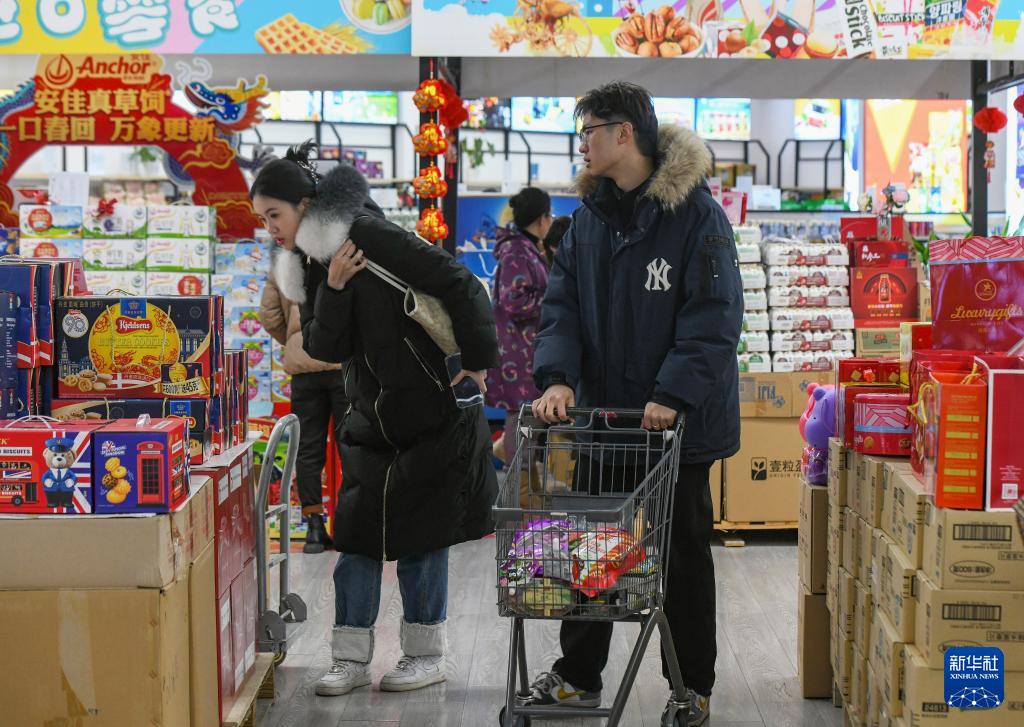2月6日,市民在浙江省台州市路桥区一家超市购买年货。(新华社发 蒋友青 摄)