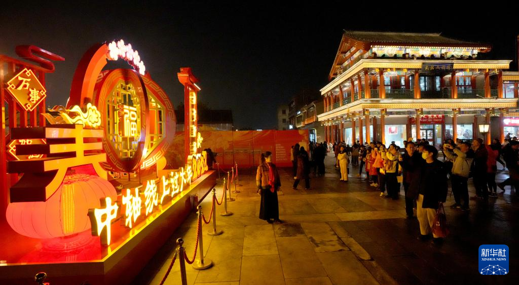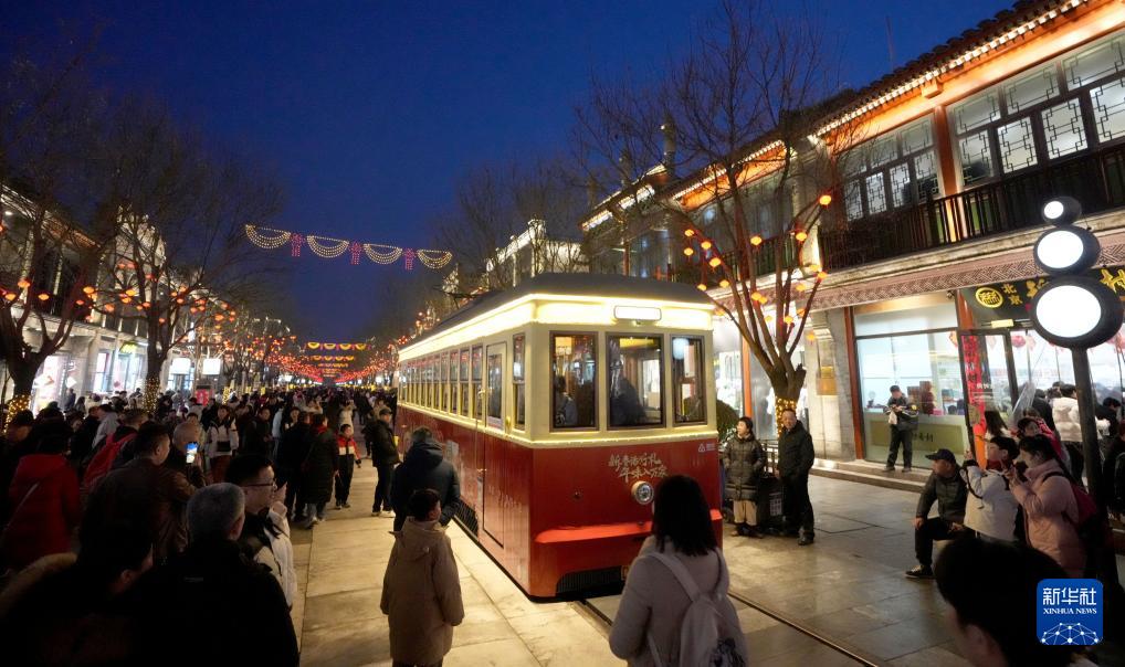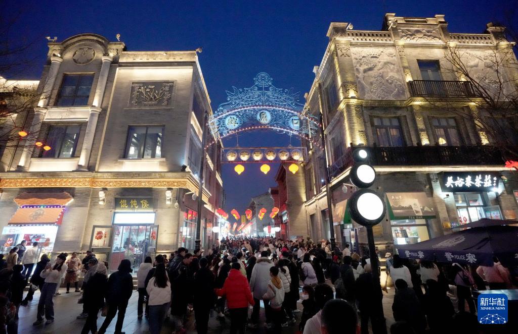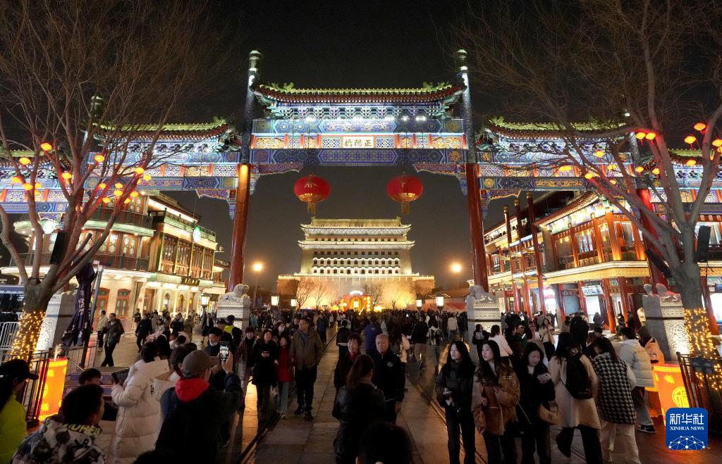 2月17日是农历正月初八,北京前门大街入夜后灯火璀璨,吸引市民游客来这里逛街、赏灯,感受浓浓年味。