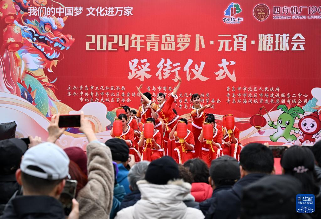 2月18日,2024年青岛萝卜·元宵·糖球会正式开幕,活动包含赏花灯、观舞龙、赶大集、游园会等特色民俗活动,吸引不少市民、游客前来参观。