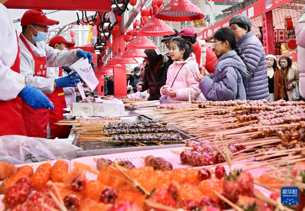 2月18日,游客在萝卜·元宵·糖球会上选购糖球。(新华社记者 李紫恒 摄)