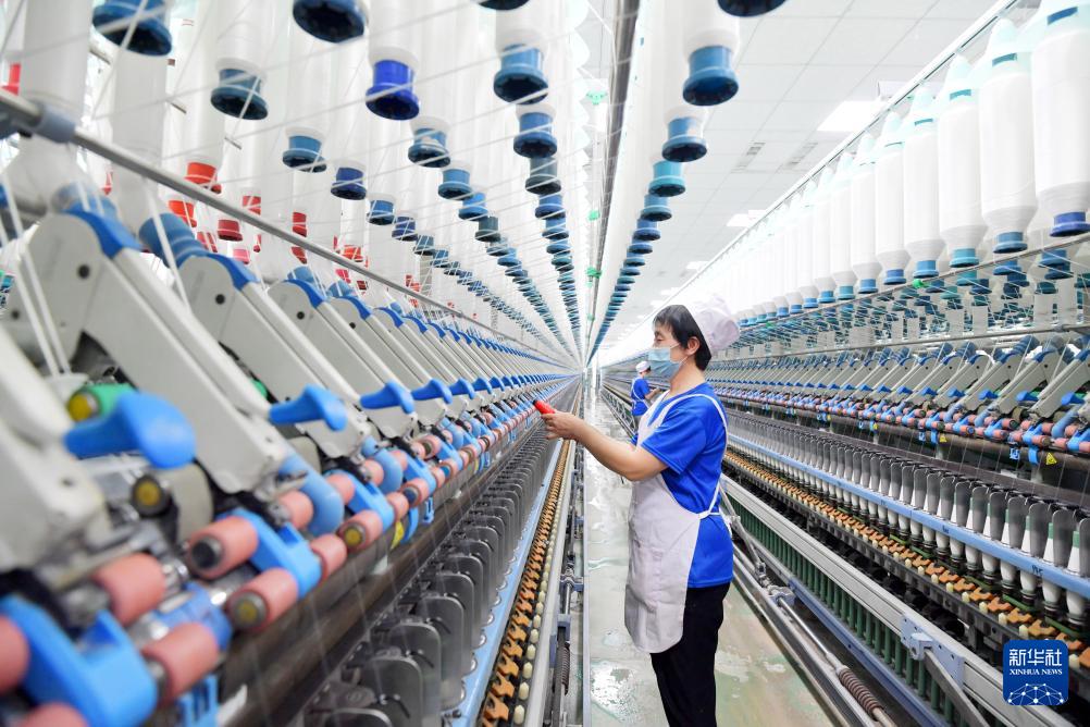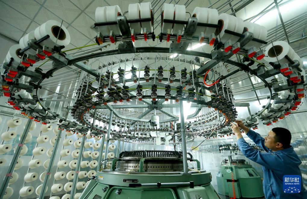 2月18日,在位于山东省青岛市即墨区的青岛颐和针织有限公司,工人在生产服装面料产品。(新华社发 梁孝鹏 摄)