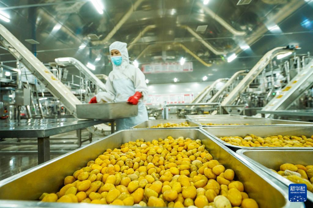 2月18日,工人在河北省遵化市一家板栗加工企业的车间工作。(新华社发 刘满仓 摄)