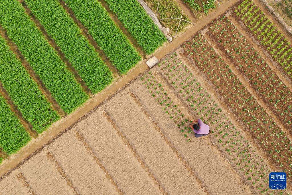 2月18日,江西省吉安市泰和县澄江镇南门村农民在田间种植蔬菜(无人机照片)。(新华社发 邓和平 摄)