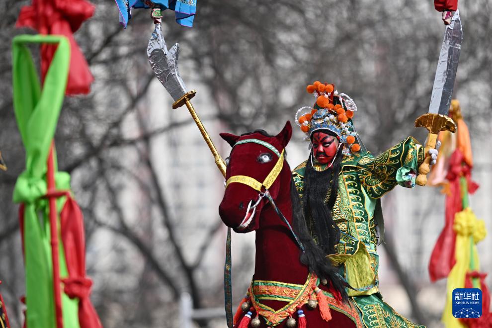 2月19日,在青海省西宁市,演员在社火巡游活动中表演。(新华社记者 张龙 摄)