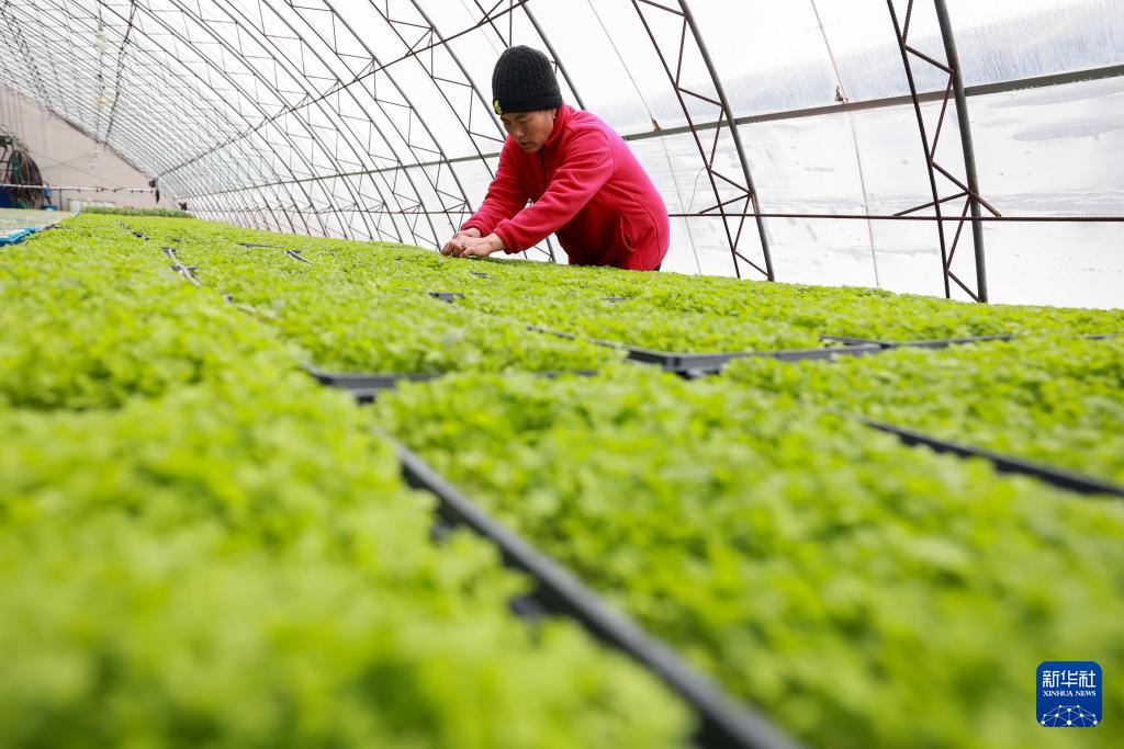 2月22日,工作人员在唐山市丰南区一家合作社的育苗棚内管护蔬菜秧苗。(新华社发 李秀清 摄)