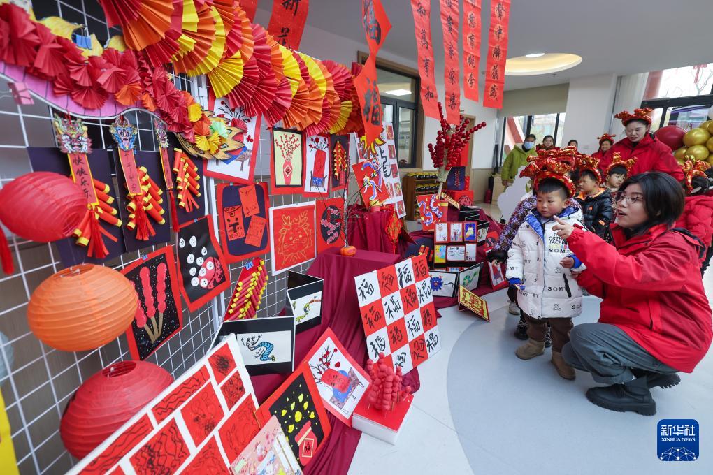 2月25日,李家巷镇中心幼儿园的老师给孩子们讲述龙年传统文化知识。(新华社记者 徐昱 摄)