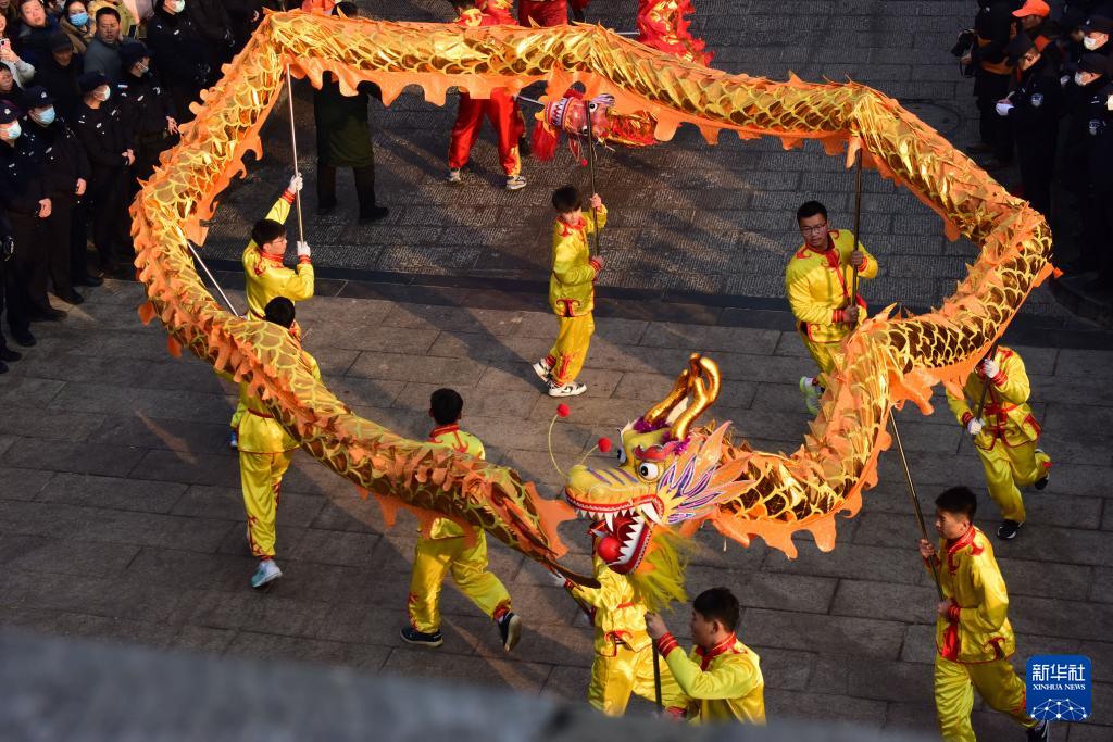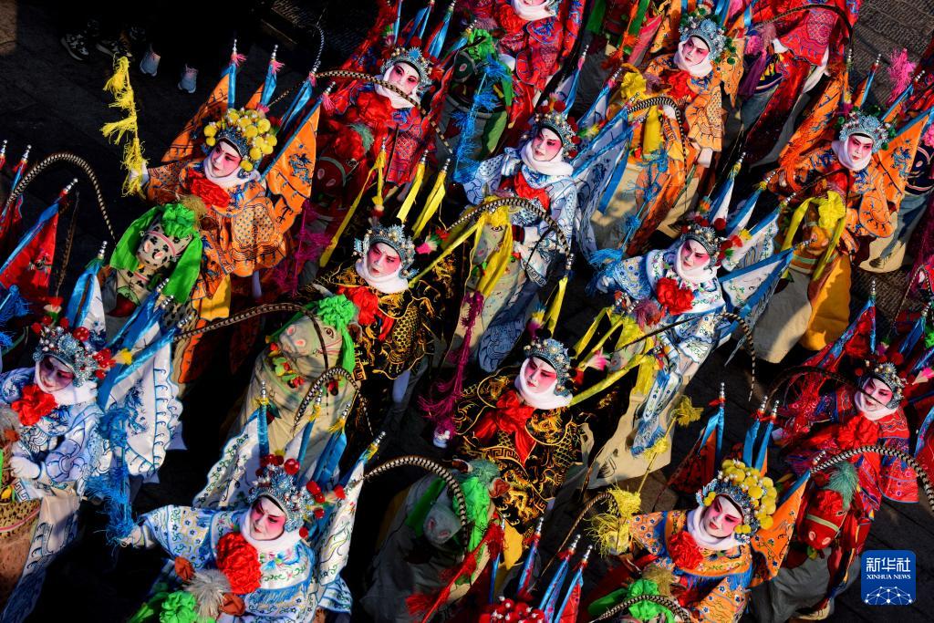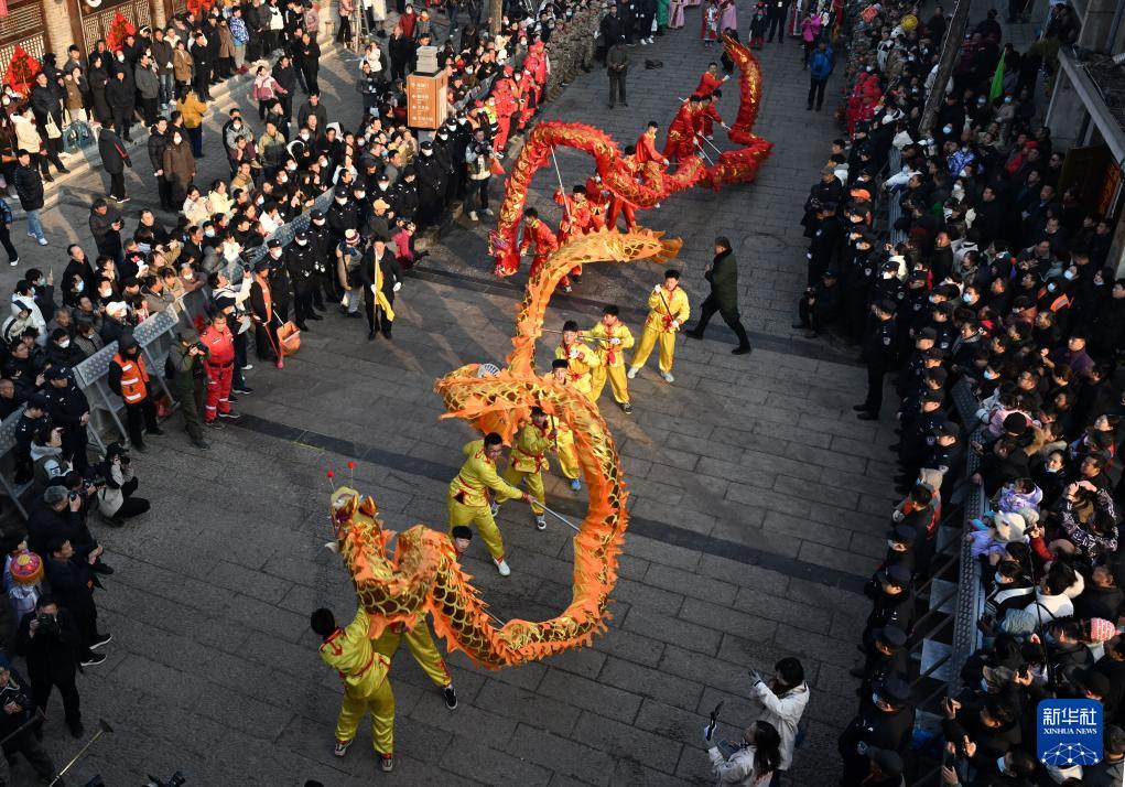 2月25日,浚县民间社火团体在古庙会上表演。(新华社发 张婷媛 摄)