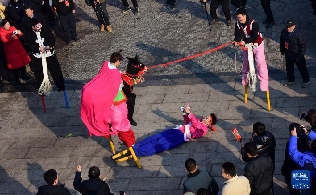2月25日,浚县民间社火团体在古庙会上表演。(新华社记者 朱祥 摄)