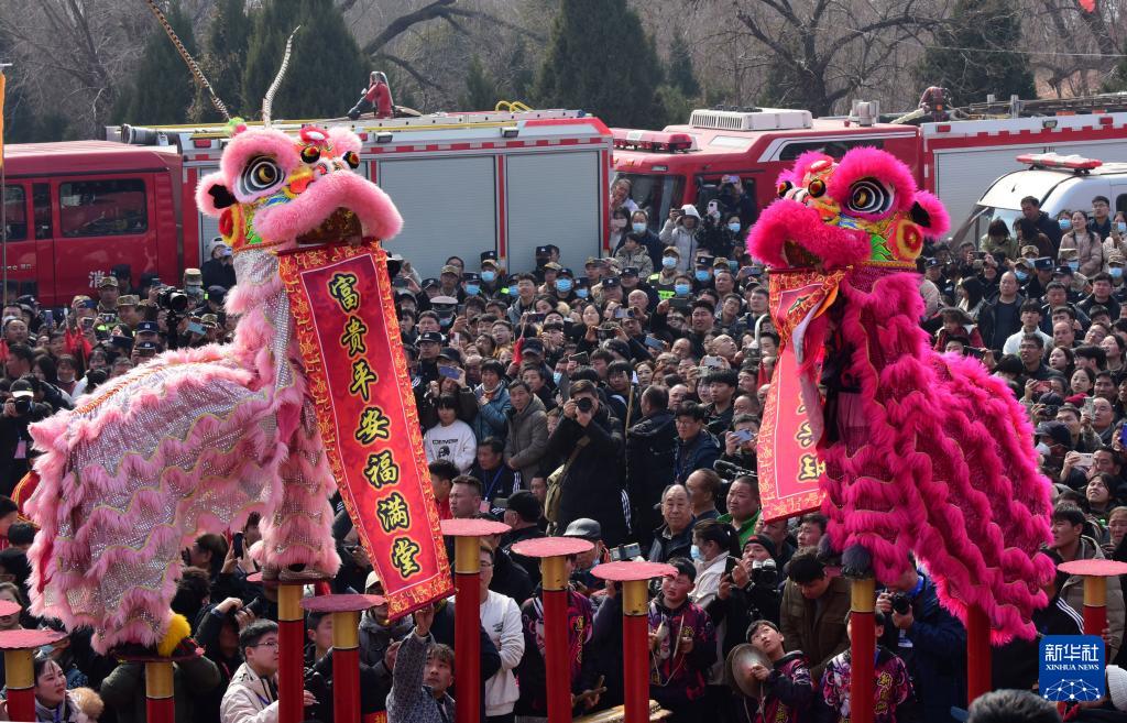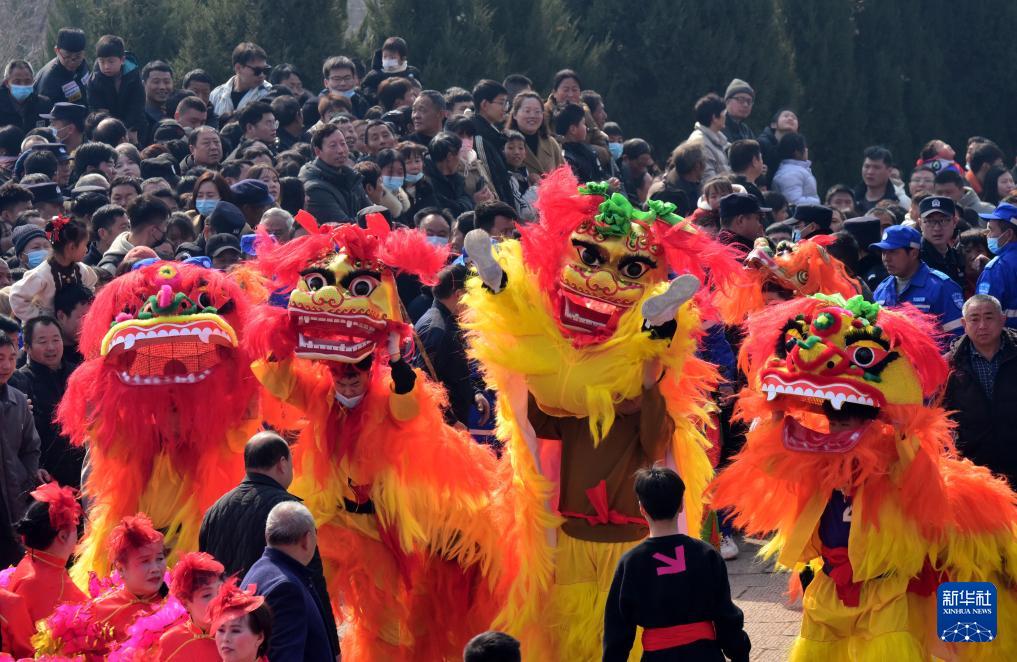 农历正月十六,在河南省浚县举行的正月传统古庙会上,数十支由当地群众组成的社火表演团队轮番表演抬阁、舞狮、踩高跷等社火演出。据介绍,河南浚县正月古庙会已有1600多年历史,被誉为民俗文化的“活化石”。