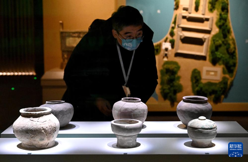 2月26日,参观者在河南安阳殷墟博物馆新馆内观看展品。(新华社记者 李安 摄)