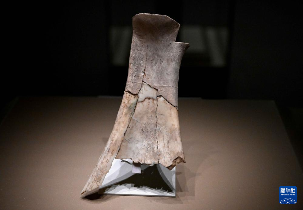 河南安阳殷墟博物馆新馆内展出的刻辞卜骨(2月26日摄)。(新华社记者 李安 摄)