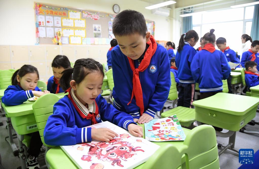 2月26日,在北京市海淀区中关村第四小学,二年级的学生上开学第一课。(新华社记者 任超 摄)