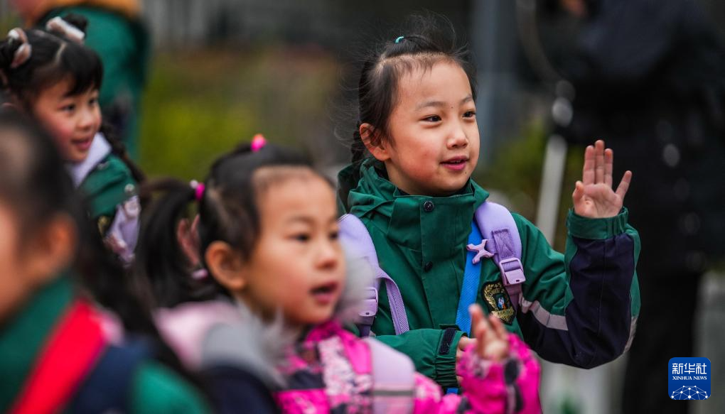2月26日,贵阳市实验小学未来方舟分校的学生进入校园,迎接新学期。(新华社记者 陶亮 摄)